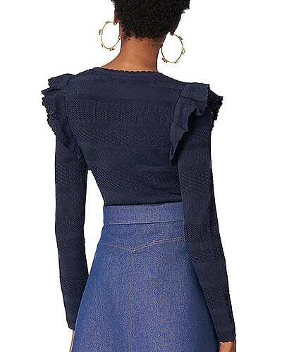 - Dramatic Ruffle Striped Motif Knit Top in midnight