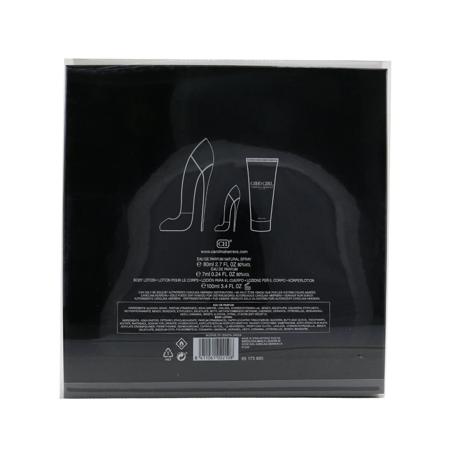 Good Girl Coffret: 1x Eau De Parfum Spray 80ml/2.7oz 1x Body Lotion 80ml/2.7oz 1x Eau De Parfum 7ml/0.2oz Ideal for personal use or as a gift